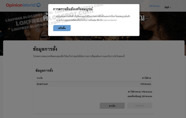 เข้ามากดแลกรางวัลจากการตอบแบบสอบถามกับ OpinionWorldรอบนี้กดแลก Grab Food 200 บาท